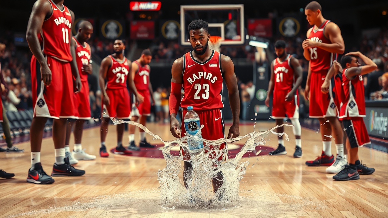 Ingram, unfazed by his own actions, simply observed as staff cleaned up the mess, while some water splashed onto teammate Scottie Barnes, prompting him to swiftly exit the court.