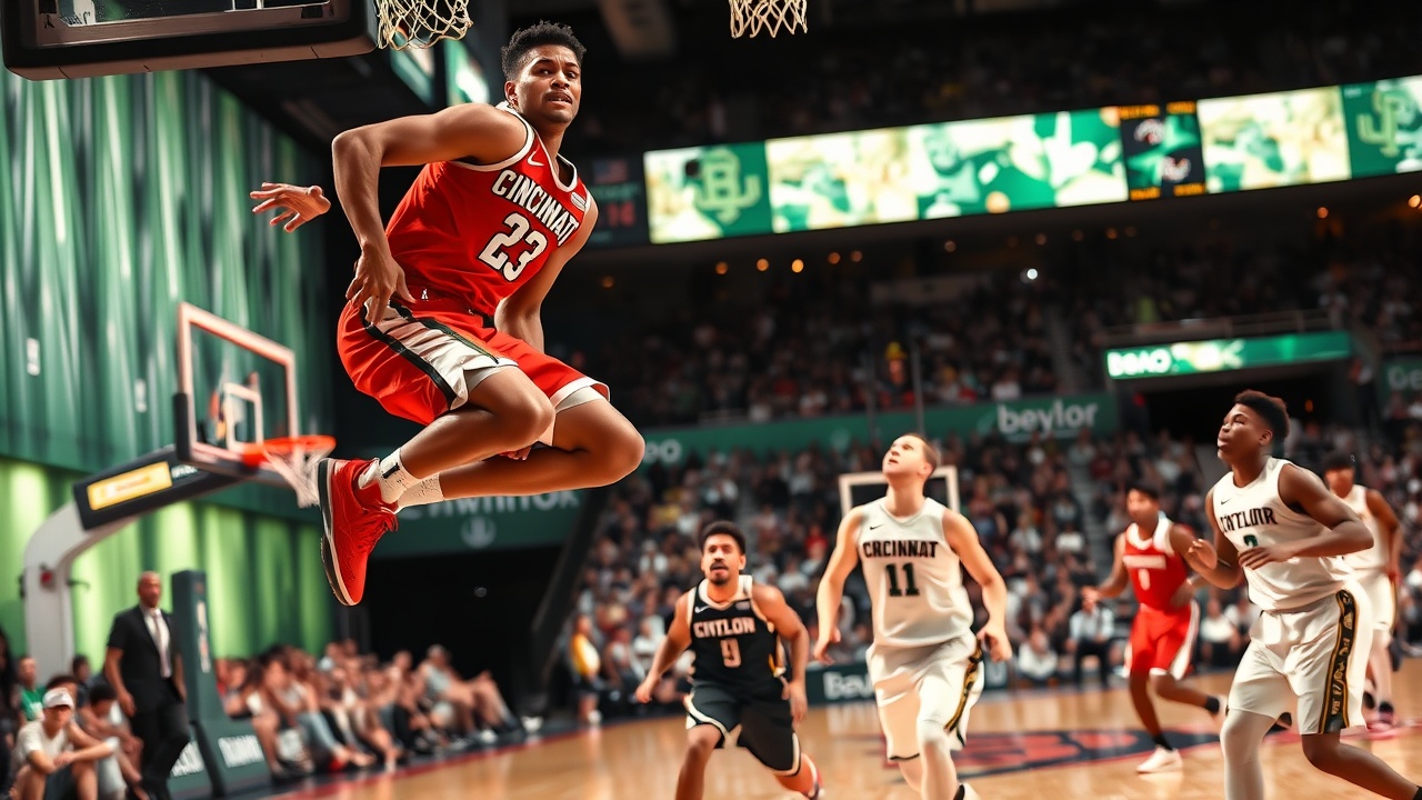 Cincinnati set the tone early, with Miller executing a fastbreak dunk just four seconds into the game, maintaining a lead they would not relinquish. An early 8-0 scoring burst pushed the Bearcats ahead by a double-digit margin within the first eight minutes. Although Baylor briefly countered with their own 10-0 run, Cincinnati headed into halftime with a comfortable 35-28 advantage.