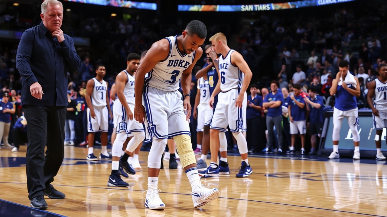 Duke University, currently the top team in college basketball, faces significant challenges as they prepare for the upcoming Atlantic Coast Conference (ACC) Tournament. The Blue Devils have suffered a major setback with the injury of their starting point guard, Caleb Foster, who fractured his right foot during the first half of a heated matchup against the University of North Carolina on Saturday.