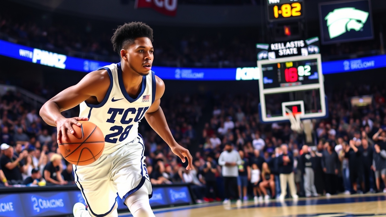 In a thrilling matchup on Saturday, TCU triumphed over Kansas State with a nail-biting score of 84-82. The standout player for the Horned Frogs was Xavier Edmonds, who achieved a personal best by scoring 26 points. His crucial contributions late in the game included tying the score and securing the lead with just six seconds left, finishing a remarkable comeback from a five-point deficit with only a minute and a half to go.