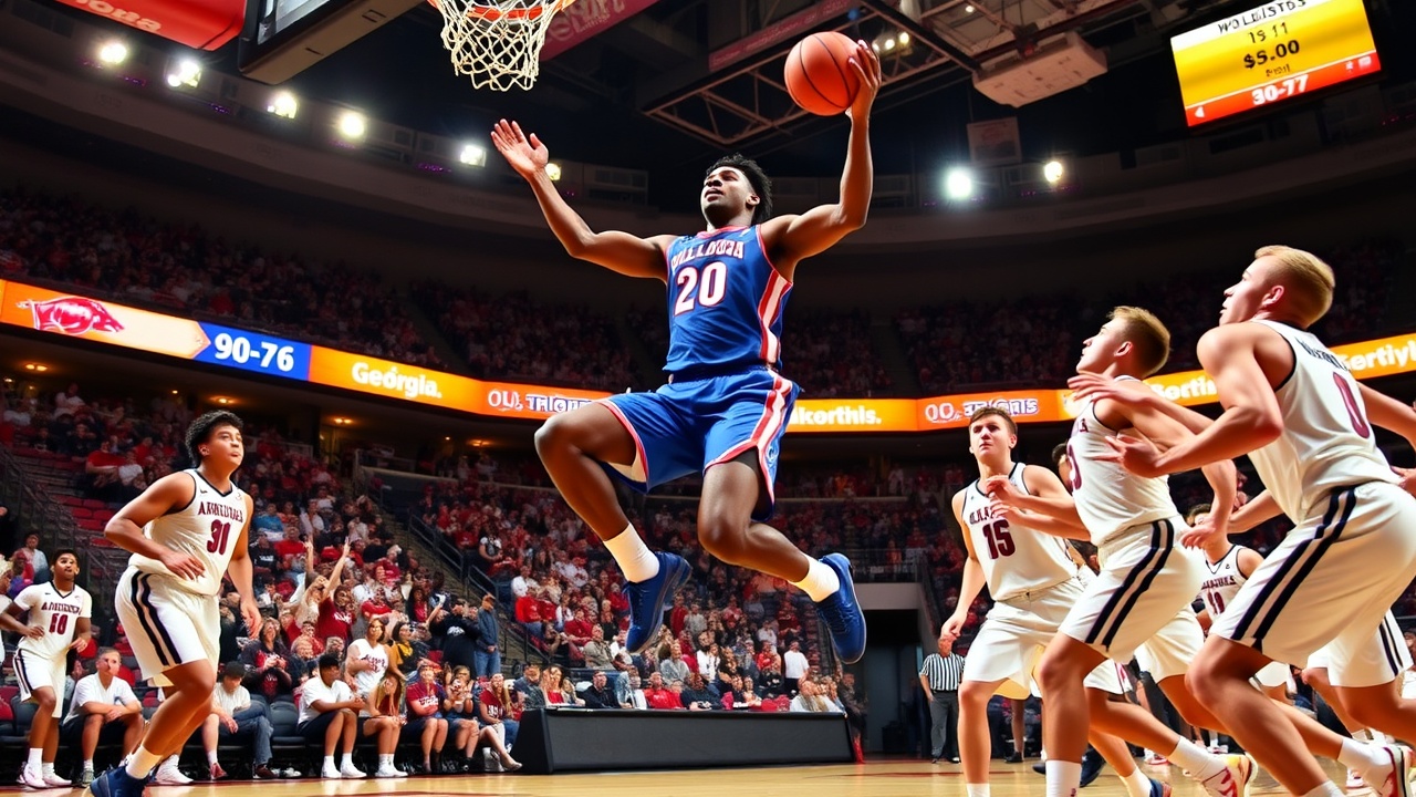 In a thrilling college basketball matchup on Saturday, No. 21 Georgia secured a 90-76 victory over No. 17 Arkansas, showcasing a strong performance led by Jeremiah Wilkinson, who netted 20 points. Blue Cain contributed significantly with 18 points, including 13 during the second half of the game, establishing himself as a key player with his offensive consistency.