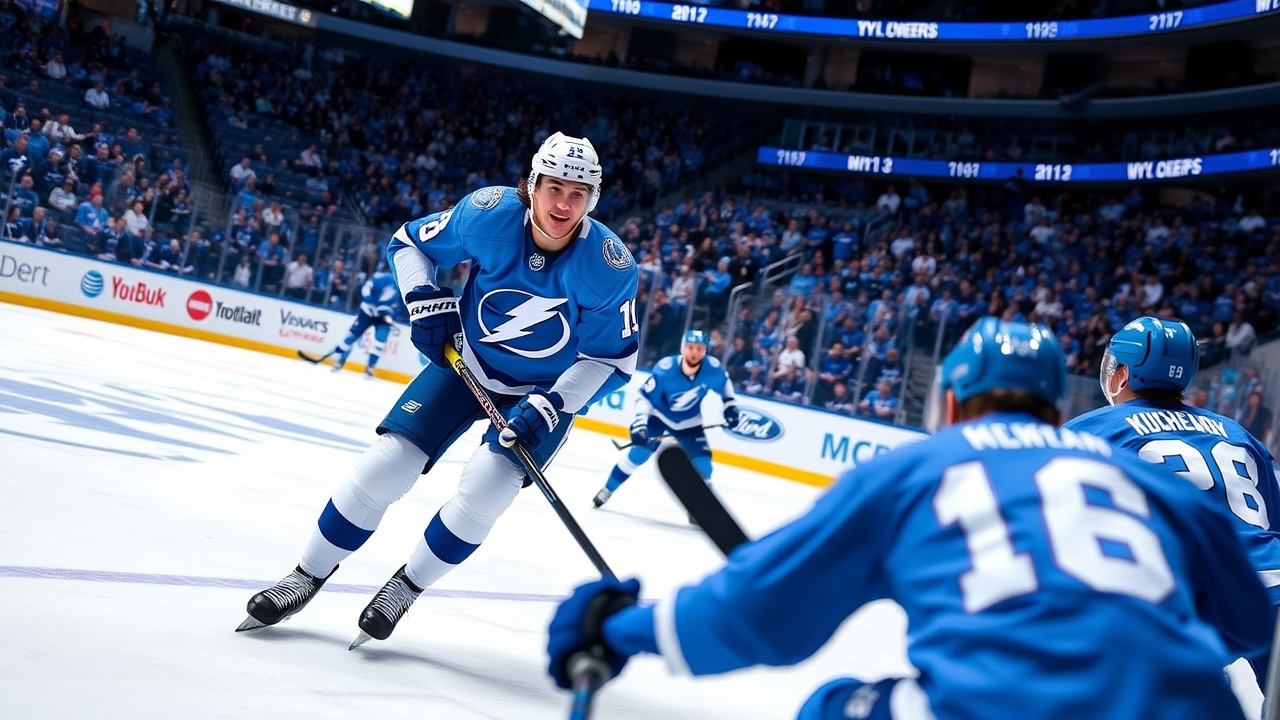 In a dominant performance on Saturday night, the Tampa Bay Lightning defeated the Toronto Maple Leafs 5-2, ending a four-game losing streak. Nikita Kucherov was instrumental in the victory, contributing three assists in a first period where the Lightning scored four goals and adding another assist in the third period, bringing his season total to 100 points.