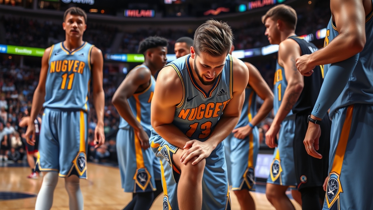 During a tense matchup between the Denver Nuggets and the Miami Heat on Monday night, star player Nikola Jokić was forced to exit the game prematurely after sustaining a knee injury. The incident occurred just before halftime while Jokić was positioned in the paint. As he attempted to defend against Jaime Jaquez Jr., teammate Spencer Jones inadvertently stepped on Jokić’s left foot, causing his knee to buckle awkwardly.