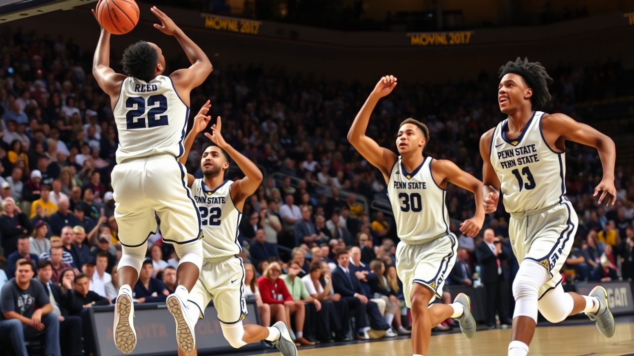 In a thrilling college basketball showdown, Josh Reed delivered a personal best performance with 25 points, leading the Penn State Nittany Lions to a narrow victory over the Iowa Hawkeyes, finishing the game at 71-69. This triumph not only brought an end to Penn State’s three-game losing streak but also showcased their strong shooting prowess, as the team connected on 64% of their shots (25 of 39), including a notable 60% accuracy from beyond the arc (9 of 15).