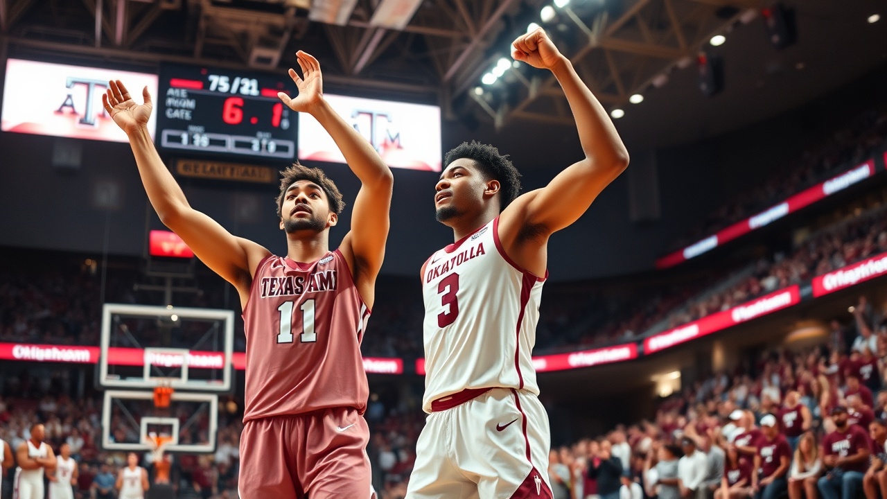 In an intense matchup on Saturday, Texas A&M triumphed over a struggling Oklahoma team with a score of 75-71 in Norman, Oklahoma. Rashaun Agee was pivotal for the Aggies, contributing 18 points, while Rylan Griffen added 14 points to help secure the victory.
