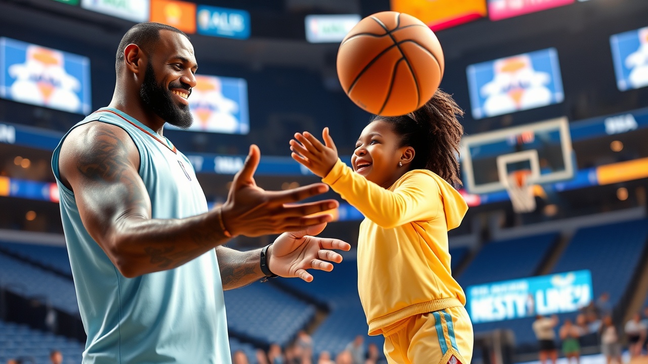 With a bit of guidance and affection from her father, Zhuri expressed her delight over the rare opportunity to practice on the court while LeBron completed his own warmup for the upcoming match against the Golden State Warriors.